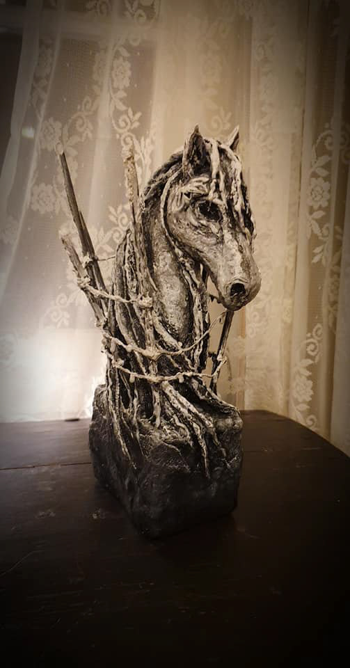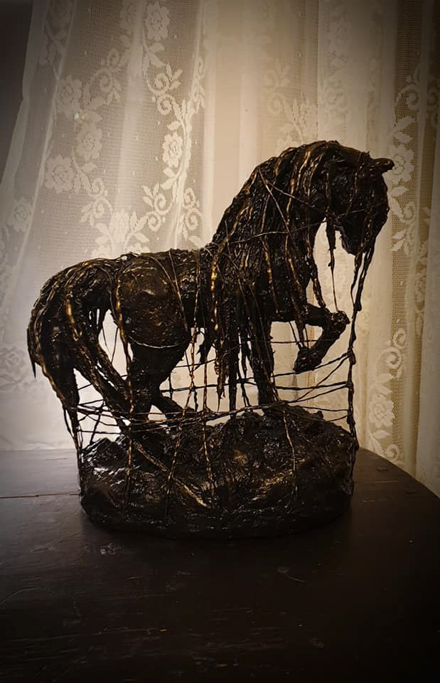 Material: Brons, stålnät och gips.